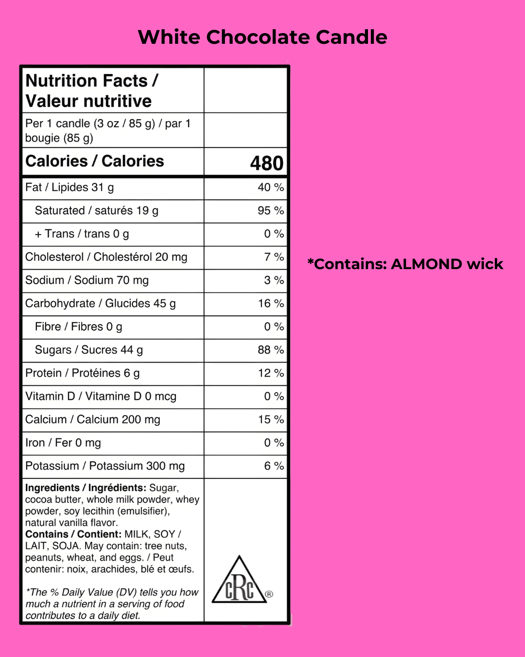 Your age, but sweeter. A sculpted white-chocolate number with our edible almond wick for a clean wish—then eat the roasted almond wick and chocolate candle.